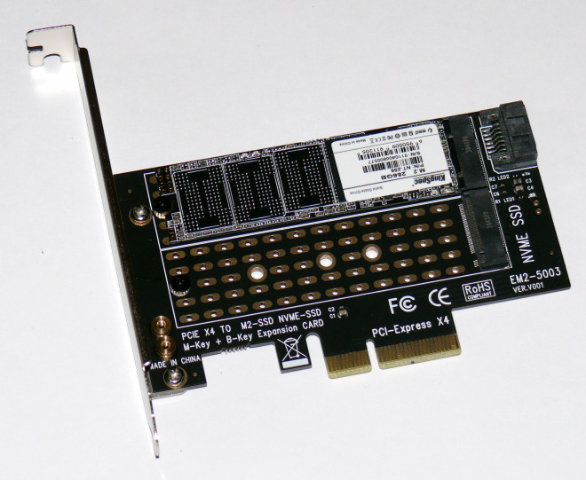 Хотя в случае SATA от PCI-E нужно только электричество, поскольку кабель для данных никто не отменял. Решил купить подобный комплект для моего домашнего сервера, чтобы использовать его в качестве системного накопителя. Именно для этого мне и нужен был интерфейс SATA, а не NVMe. Накопитель (в апреле 2021 года) обошелся в 2473 рубля, а переходник стоил 355 (итого 2828 руб).