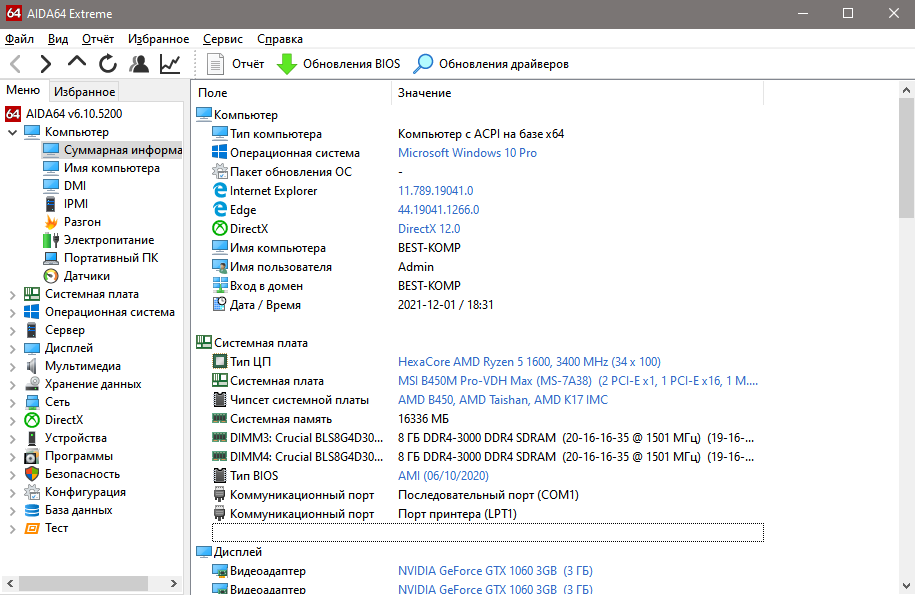 Процессор: AMD Ryzen 5 1600, 3400 MHz